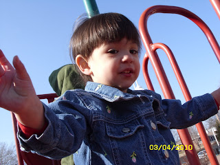 She had a lot longer hair, but when I was watching them, her brother got hold of the scissors and gave her a haircut. I think she is cute with it cut up around her ear. I am sure it has grown out a lot since this picture was taken.