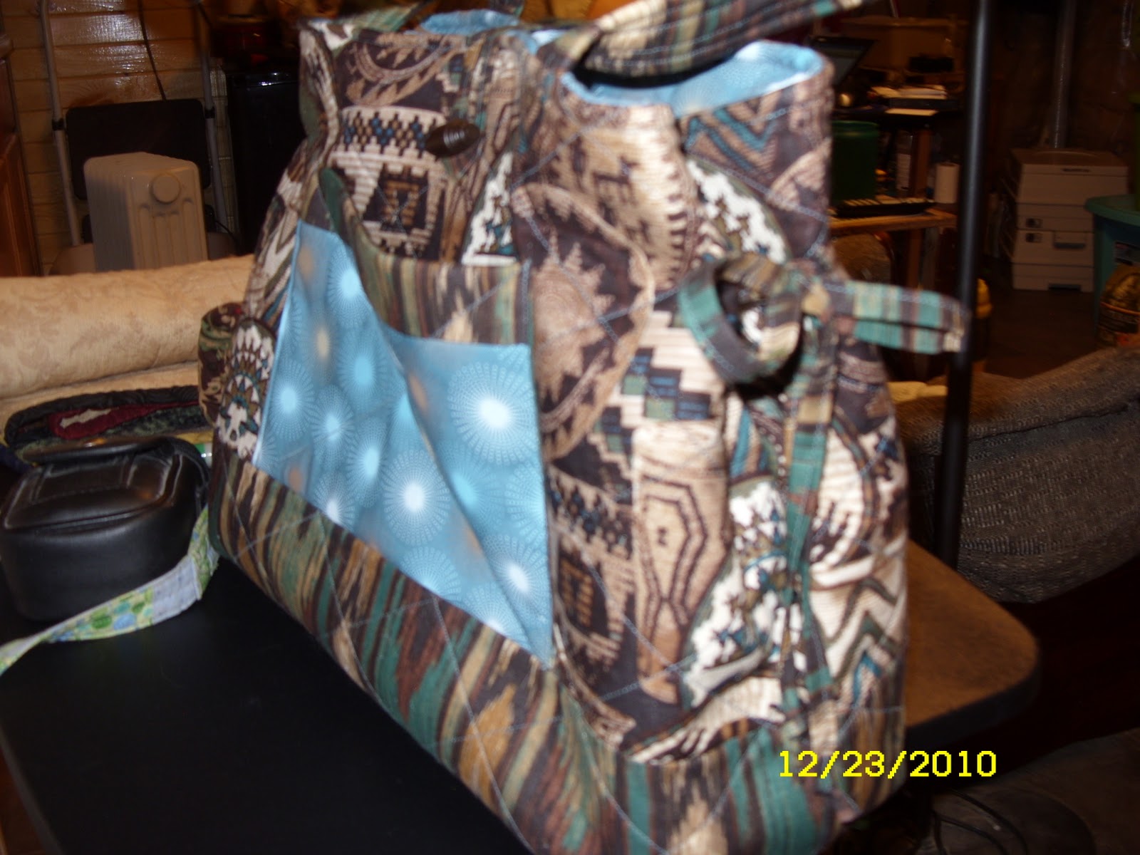 I am showing you the fabric too, because my picture of the bow tucks bag didn't turn out real good. I think this is just beautiful fabric. Thankfully, so did Carolyn. She said everyone who sees it wants one. LOL Here is her bag. I forgot to take pictures of the girls with their gifts, but I do have pictures of them. (grin)